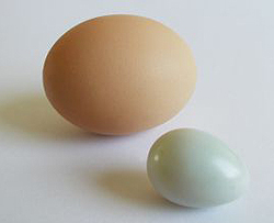 No, they have the same nutritional value. The shell color is a function of the color of the hen: White breeds produce white eggs and brown breeds produce brown eggs (simple!). The reason that brown eggs tend to be costlier is that brown breeds are larger and require more feed. The color of the yolk is based on the feed. A diet of wheat and white corn meal would produce an almost colorless yolk; but adding yellow corn meal and/or marigolds produces the deep yellow yolk preferred in the U.S. |