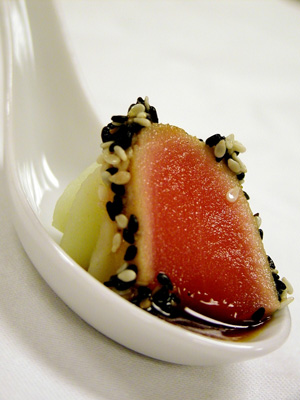 6. Seared Ahi Tuna with Wasabi Whitefish Caviar Vinaigrette
