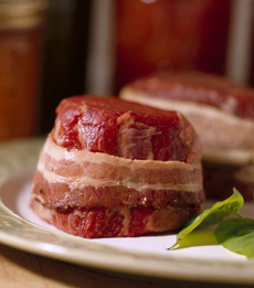 A Certified Angus® tenderloin, larded with a strip of bacon. Photo courtesy RockyMountainSteaks.com.