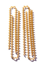 Hollow fusilli. These beautiful fusilli are long, tightly-spiraled pasta straws with a tiny hole in each strand, like a drinking straw. They are frequently packaged still in their original, long U-shaped strand, which is how they were hung to dry. Fusilli col buco made by Rustichella d’Abruzzo and are available at SalumeriaItaliana.com.