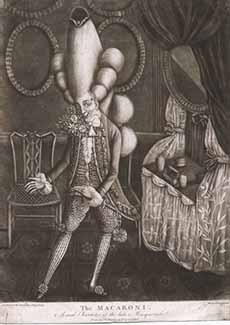 A secondary meaning for the word macaroni or maccheroni is a well-traveled young Englishman of the 18th and 19th centuries, who affected foreign customs and manners, i.e., a fop or dandy. In those times, it was typical for a young man to go on a “grand tour” of the Continent to finish his education, prior to settling down. Many young Brits came back enamored of Italy, speaking particularly of the macaroni in Italy—hence the word association. In the mid-eighteenth century, “macaroni” described an overblown hairstyle as well as the dandy wearing it. Later in the century, the popular song, Yankee Doodle Dandy, was written and sung by the British in derision of the American colonists, who adopted it in self-defense. The song is believed to have its origins in the French and Indian War (1756–1763).