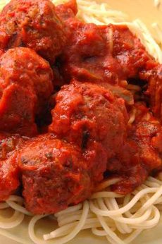 The American version of spaghetti and meatballs, large meatballs showing off the plentitude of meat in America, is unknown in Italy. Photo © Robyn Mac | Fotolia. |