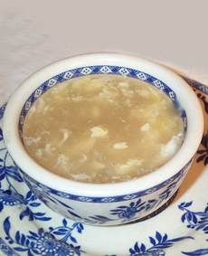 A Chinese soup (the literal translation is “egg flower soup”) is a Chinese soup made of beaten eggs in boiled chicken broth, which create fine strands. Pepper and finely chopped scallions are also commonly added. Stracciatella is an Italian version that includes Parmesan cheese. |