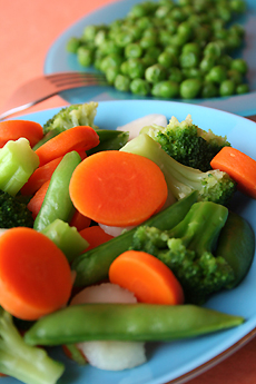 Clarence Birdseye invented the quick-freezing of food in 1924;* in 2007, his successors at Birds Eye Foods invented the concept of quick-steaming via microwaved packages of frozen vegetables. We applaud the evolution, and have been happily eating package after package of Birds Eye Steamfresh Fresh Frozen Vegetables. They will be singularly responsible for helping us uphold our new year’s resolution to eat several portions of vegetables every day. (The USDA Food Guide Pyramid recommends seven servings of fruits and vegetables every day for older children and women [three fruits, four vegetables] and nine servings for teen boys and active men [four fruits, five vegetables], with a half-cup equating to one serving. It’s like drinking those eight glasses of water—you can choose to take the advice of experts and pursue a healthy diet, or not.)