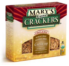 Mary’s Still Crackers. Mary’s Gone Crackers’ Original Seed Cracker, reviewed by THE NIBBLE in 2005, has become the fourth best-selling item in natural foods stores across America after only two years on the market. While the cracker category is very competitive, the gluten-free, organic and kosher product is absolutely delicious, combining flavor and crunch with ingredients that are “so textbook healthy they’re almost scary,” says the manufacturer: organic brown rice, organic quinoa, organic flax seeds, organic sesame seeds, organic wheat-free tamari, filtered water and sea salt. Read our review of Mary’s Gone Crackers’ full line, and you may go Crackers too.