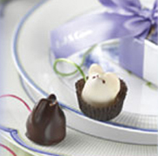 If you’re a sailor, a beach bunny, or planning a wedding near the ocean, Harbor Sweets’ Sweet Sloops (sailboat shaped almond butter crunch, with a white chocolate mainsail) are a creative substitute for the traditional truffle. You can also add molded dark chocolate seashells filled with orange crunch and sand dollars (molded dark chocolate filled with pecan halves in caramel).