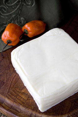 Some dishes in Latin American cuisine can be spicy-hot, but don’t think that Hispanic cheeses will be laden with jalapeños or chipotles, spiked with black pepper or cayenne and/or heavily flavored with other agents that pack a wallop. (If you noted the habañero chiles in our photographs, they’re purely for “regional color”—literally and figuratively.) Certainly, aged Hispanic cheeses tend to be strongly flavored, as are most aged cheeses, but the most traditional cheeses are milder in flavor. You will sometimes find them spiced, especially in the U.S., but don’t make the mistake of lumping all of them into one flavor class.