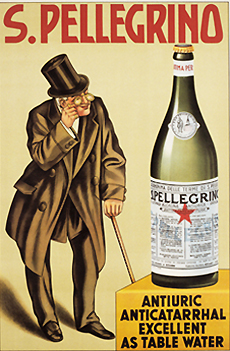 We love San Pellegrino, a naturally bottled mineral water, for its high concentration of bicarbonate, calcium, chloride, magnesium and sulphate, which give it a rich, lively flavor. Little did we know it is also an antiuric and anticatarrhal (translation: a cure for gout and phlegm).