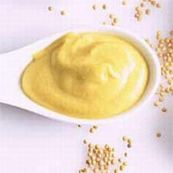 While this term refers to a non-grainy mustard, it can also specify a mustard to which butter and eggs are added.